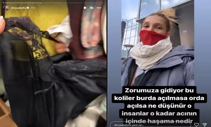 Derya Balta o anları paylaşarak “Kalan sizin yakınınız olsa şunu giymek ister misiniz? Kar diyoruz yazlıkları ayırmışsınız, terlik var burada parmak arası terlik. Yapmayın Allah aşkına. Zoruma gidiyor, haşema yollayan var…” diyerek isyan etti.