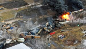 ABD’nin Ohio eyaletinin East Palestine kasabası yakınlarındaki demir yolunda kimyasal madde taşıyan 150 vagonlu trenin 50 vagonu, 3 Şubat’ta raydan çıkarak patladı.