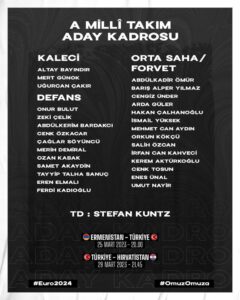 A Milli Takım, 2024 Avrupa Şampiyonası Elemeleri’nde Ermenistan ve Hırvatistan’la oynayacağı karşılaşmaların aday kadrosu belli oldu.
