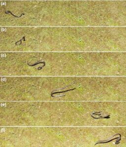 Yılan, vücudunun bobinlerini tekrar tekrar havaya fırlatarak ve yokuşlardan aşağı yuvarlanarak ‘aktif taklalar’ gerçekleştirdi.
