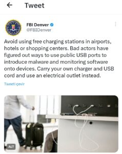 FBI: Halka açık ücretsiz şarj bağlantı noktalarını kullanmayı bırakın! Kötü amaçlı yazılım bulaştırıyor!