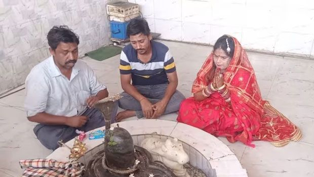 Ailelerin de desteğiyle Bareilly dışındaki bir tapınağa getirilen damat, burada gelin ile dünya evine girdi.