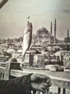 Köprüye geldim ne göreyim. Köprünün Haliç, Boğaz, iki yanı silme balıkçı kayıklarıyla dolu. Denizin yüzü görünmüyor. İskeleye indim, her dubanın üstüne birer adım arayla insanlar çömelmişler, ellerinde olta, balık bekliyorlar. Balık oltaya düştü mü, kulacı açıp kapayıp, oltayı çekmenin bir raconu var. Oltanın iğnesindeki balık, havada küçük, kesik kavisler çize çize çırpınıyor. Güneş ışınları balığın kaygan ıslak sırtında çakıp sönüyor. Canım lüferi insanın serin serin tutup öpesi geliyor.