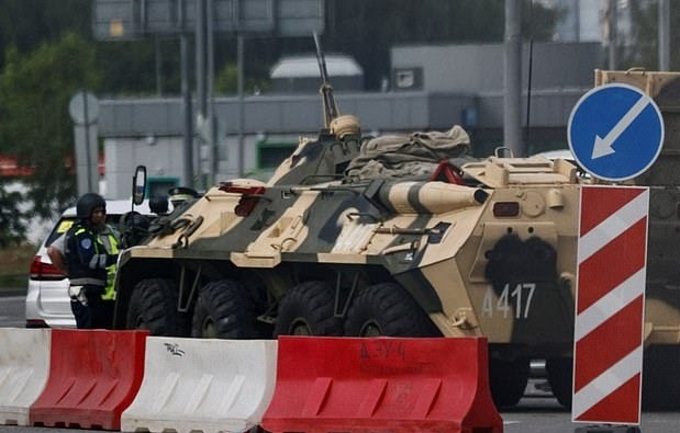 Rusya’nın Wagner milis kuvvetlerinin saatler içinde beklenen gelişinden önce askerler ileri karakollar inşa ederken askeri araçlar sokakları doldurdu