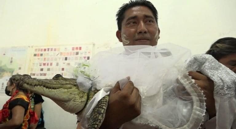 Meksika’nın Oaxaca eyaletinde yer alan San Pedro Huamelula’nın Belediye Başkanı Victor Hugo Sosa Garcia halkına şans, bolluk ve refah getirmesi için Alicia Adriana adlı timsahla evlendi. Müzik ve danslar eşliğinde festival havasında geçen düğüne şehir halkı büyük ilgi gösterdi.