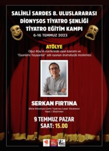 Şenliğin eğitim programları kapsamında Efeler Belediyesi Şehir Tiyatrosu sanat yönetmeni dramaturg-yazar Serkan Fırtına, ” Oğuz Atay’ın Eserlerinde Oyun Kavramı ve ‘Oyunlarla Yaşayanlar’ Adlı Oyunun Dramaturjik İncelemesi” atölyesini ve şehir tiyatrosu oyuncu ve eğitmenlerinden Mehmet Emektar da “Oyunculukta Amaç ve Engeller” atölyesini gerçekleştirecek.