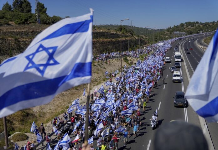 Netanyahu hükümeti, yargı düzenlemesi kapsamında Yüksek Mahkeme’nin hükümet üzerindeki denetimini kaldıracak yasa tasarısının 2. ve 3. oylama için 24 Temmuz’da Meclise getirileceğini açıkladı. Buna karşı çıkan protesto grupları ise gösteri ve sivil itaatsizlik eylemlerine hız verdi. Hükümet karşıtı bir grup İsrailli, 18 Temmuz’da Tel Aviv’den Batı Kudüs’e yaklaşık 60 kilometrelik yürüyüş başlattı.