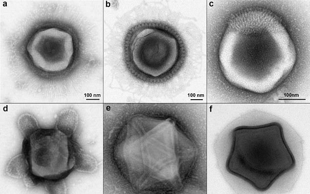 Virüsler, dokunaç benzeri “elektron yoğun iç tüp” uzantıları, 20 yüzlü zar şeklinde protein kabukları, yıldız şekilleri ve biyolojik amaçları hala bilinmeyen diğer olağandışı şekiller sergiliyorlardı.