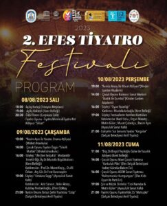 İkinci Efes Tiyatro Festivali ile ilgili festival programı ve ayrıntılı bilgi Efes Selçuk Belediyesi Sosyal Medya hesaplarında yer alıyor.