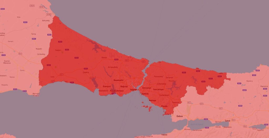 – Esenyurt: Yüksek ve yoğun yapılaşma, artan nüfus ve göçmen yoğunluğu ile depremden etkilenme riski yükselen bir ilçe.