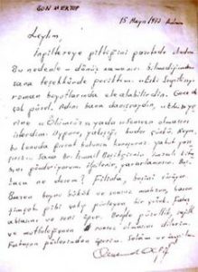 sahiden dokunmak istiyorum uzun parmaklı ellerine”(1938 – 13 ikinciteşrin İstanbul Tevkifhanesi)