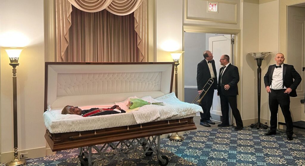 Stoneman Willie Papyonlu takım elbise içinde göğsünde kırmızı bir kuşakla 128 yıl Pensilvanya’da bir cenaze evinde sergilendi.