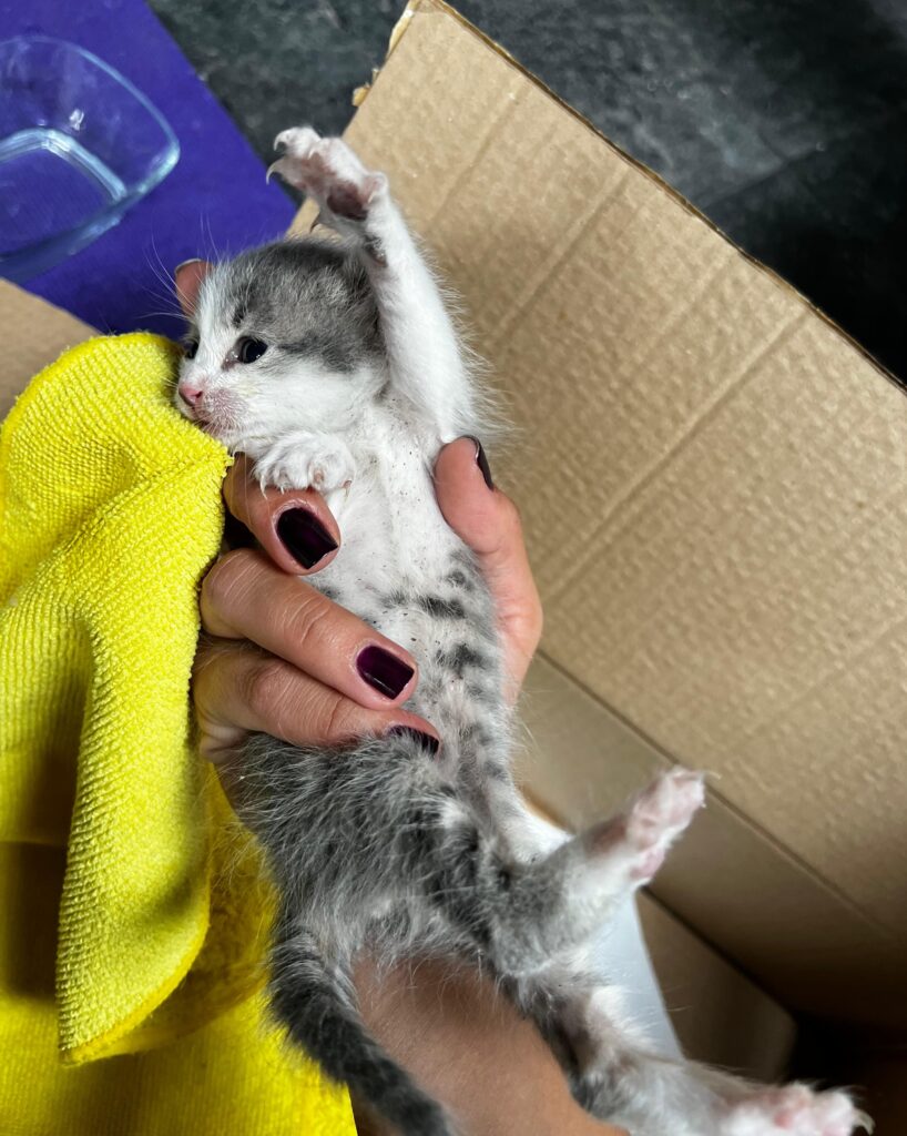 Duvardan aşağıya indirilen yavru kedinin aç susuz kaldığı anlaşılınca çevreden mama takviyesi yapıldı. Ancak Beşiktaş Belediyesi’nden gelen Acil Hayvan Ambulansı ‘Mobivet’ ekipleri, kedinin yaklaşık 15 günlük olduğunu ve anne sütü gerektiğini bildirdi.