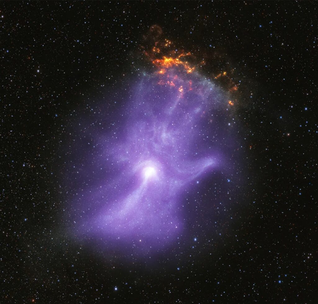 Abd’nin Uzay ve Havacılık Dairesi NASA, “Kozmik el” diye adlandırdığı Pulsar yıldızının yeni görüntüsünü yayımladı. Görüntü, başta NASA’nın en yeni x-Ray teleskobu IXPE olmak üzere 3 teleskop tarafından saptandı.