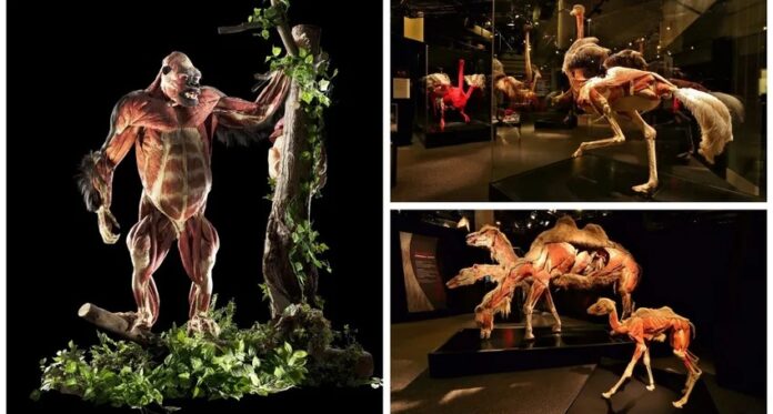 Sergide filden zürafaya, keçiden yılan balığına, ahtapottan deve kuşuna kadar 100’den fazla gerçek hayvan bedeninin iç dünyası, kasları, iskelet sistemi ve damarları sanatsal bir anlayışla sunuluyor.