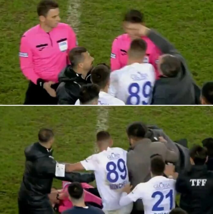 Son dakika spor haberi: Trendyol Süper Lig’in 15. haftasında Konyaspor ile Ankaragücü maçında karşılaşmanın hakemi Halil Umut Meler’e saldırı gerçekleşti. Ankaragücü Başkanı Faruk Koca, bitiş düdüğünün ardından Halil Umut Meler’e yumruk attı. Yere düşen Meler’e birkaç kişi tekme attı. A Spor canlı yayınında, yaşanan bu olayın ardından tüm hakemlerin maçlara çıkmama kararı aldığı ifade edildi.
