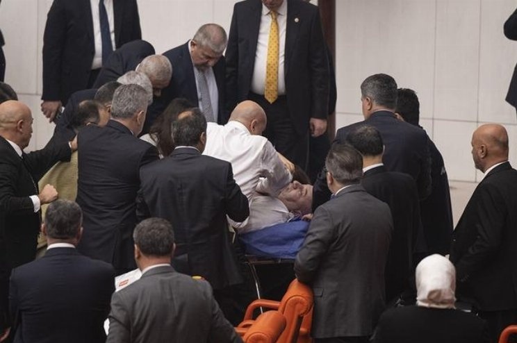 Kalp masajı yapılan Bitmez, Genel Kurul’dan sedye ile çıkartılıp, ambulansla hastaneye kaldırıldı.