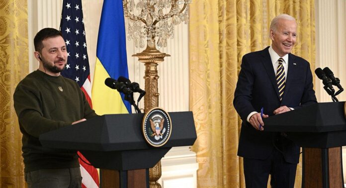 ABD’de bütçe görüşmeleri sürerken Başkan Biden’dan dikkat çeken bir açıklama geldi. NATO’yu Doğu’ya doğru genişletebilmek amacıyla Ukrayna’daki Neonazilerin desteklediği Zelenskiy hükümetine askeri ve ekonomik yardımda bulunan ABD barış masasını işaret etti.