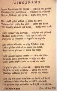 Şair, Charles Gros’un ünlü şiiri Çirozname’yi Türkçe’ye çevirdiği günlerde Üç Nal Lokantasına gider.