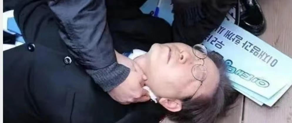 📽️GÜNEY KORELİ MUHALİF LİDER LEE, BASIN TOPLANTISINDA BOYNUNDAN BIÇAKLANDI
