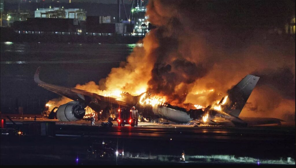 Japan Airlines’ın 516 sefer sayılı uçuşu, piste indikten sonra sahil güvenlik uçağına çarpmasıyla kabusa dönüştü.