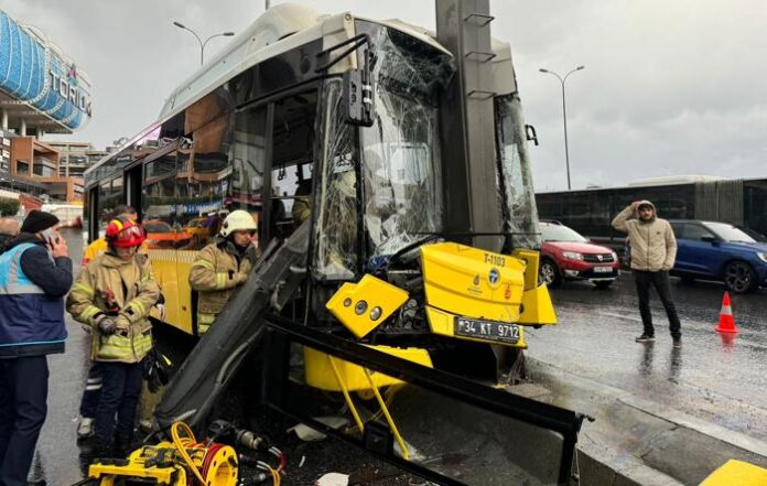 İETT otobüsü D-100 Karayolu’nda direğe çarptı: Yaralılar var