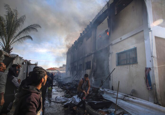 Güney Gazze’deki Han Yunus kentinde bulunan sığınma merkezinde 30,000 yerinden olmuş Filistinli barınmaktaydı.