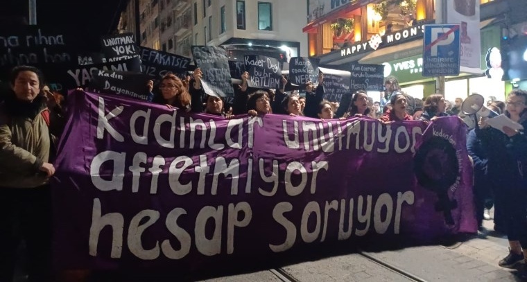 Depremin yıldönümünde kadınlardan İstanbul’da eylem: ‘Unutmuyor, affetmiyor, hesap soruyoruz’
