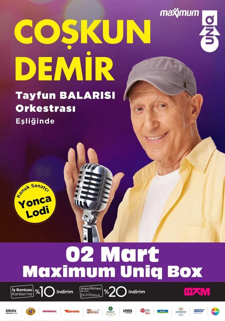 1980-1990’larda altın dönemini yaşayan Türk Pop Müziği’nde kadife sesi ve güçlü yorumuyla kalıcı bir yer tutan Coşkun Demir, 2 Mart Cumartesi akşamı İstanbul Maximum Uniq Box’ta izleyicisiyle buluşacak.