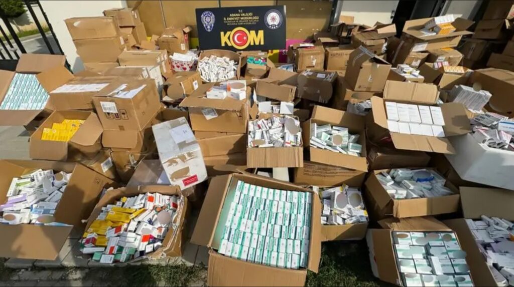Adana’da bir bakkal dükkanında devlet hastanelerine ait 35,206 kutu ilaç ele geçirildi.