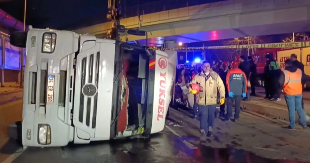 İstanbul’un Bakırköy ilçesinde üstgeçide çarpanTIR otomobilin üzerine devrildi. Feci kaza sonucu 4 kişi hayatını kaybetti.
