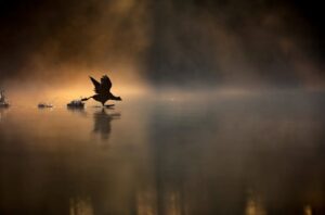 Britanya Doğal Hayat Fotoğraf Ödülleri’nde çok sayıda kategori var. Bunların ikisinde Max Wood’un sabah sisinde bir gölden havalanan kazın fotoğrafı gençler dalında birincilik kazandı.