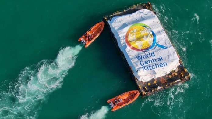 Akdeniz’deki kaçak göçmenlere yardım eden İspanyol sivil toplum kuruluşu Open Arms’a ait gemi tarafından çekilen mavnaya yüklenmiş insani yardım malzemesi, yiyecek ve içme suyu Gazze sahilinde inşa edilen bir geçici iskele aracılığıyla mavnadan karaya indirildi. Yardımın nasıl ve ne zaman dağıtılacağı henüz bilinmiyor. Savaş nedeniyle Hamas polisi görev yapmadığından ve bölge İsrail işgali altında olduğundan dağıtımın güvenliği büyük olasılıkla İsrail Ordusu tarafından sağlanacak.