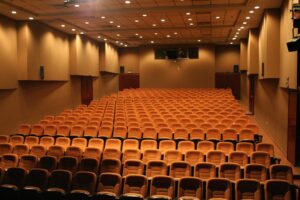 Sahnenin 4 tarafına yerleştirilen teleskopik tribünler açılıp katlanarak salonun esnek kullanımına olanak sağlıyor.