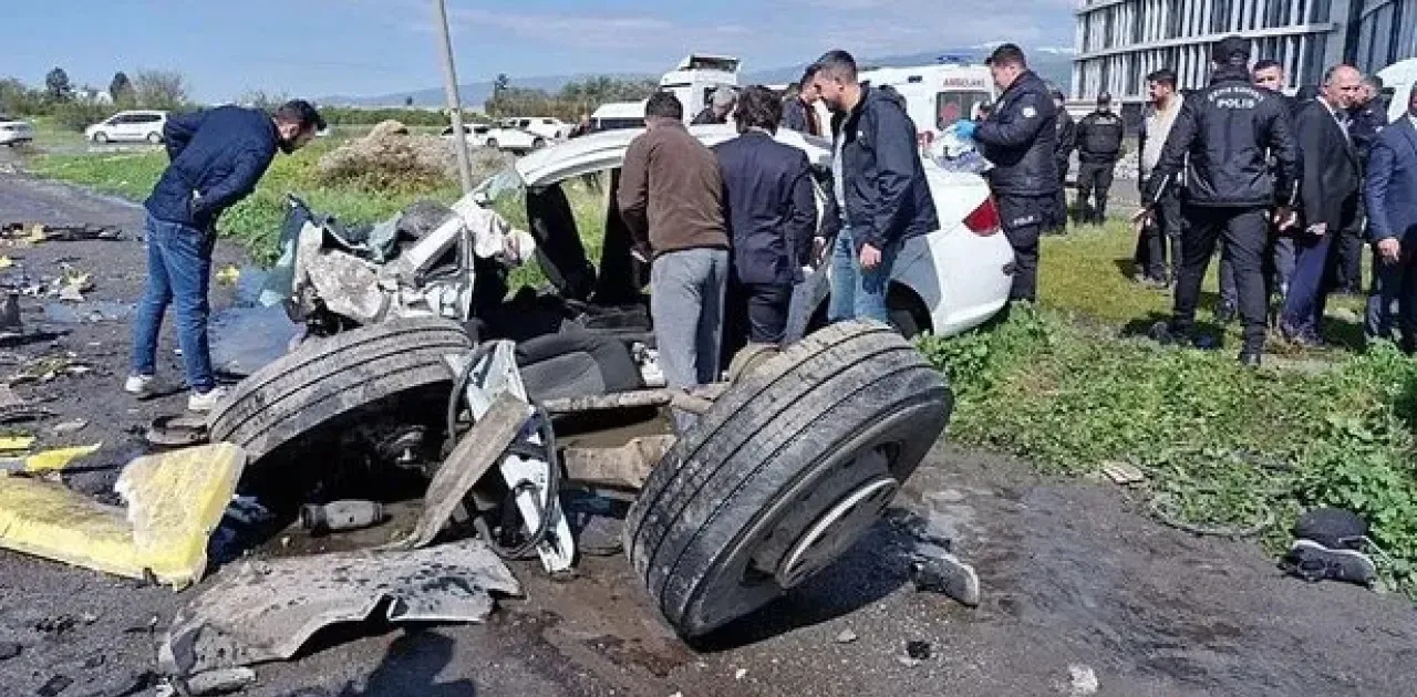 Hatay’ın Dörtyol ilçesinde, karşı şeride geçen TIR’ın çarptığı otomobildeki aynı aileden 6 kişi hayatını kaybetti. Kazada 1 kişi de yaralandı. TIR sürücüsü Şükrü K. gözaltına alındı.