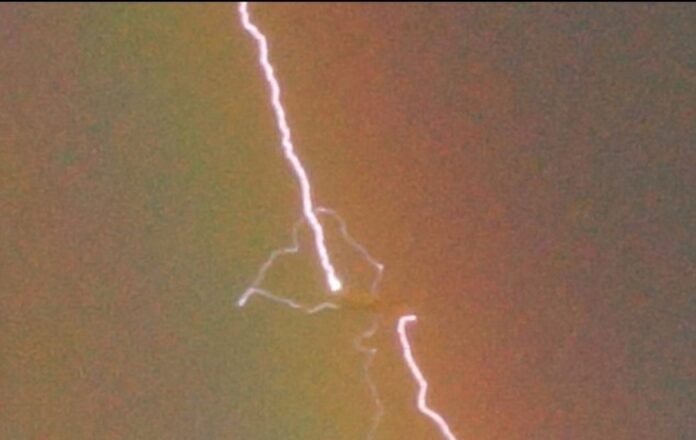 Paylaşımda, yolculuk halindeki bir uçağa yıldırımın isabet ettiği anın fotoğrafı da yer aldı.