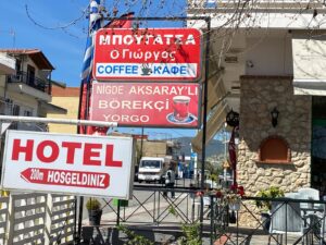 Yol güzergâhımızda bizi şaşırtan Niğde Aksaraylı Börekçi Yorgo’nun mekânı oldu. Oraya vardığımızda saat 14.00’e yaklaşıyordu. Nerdeyse börekler bitmişti. Üstelik siesta zamanı olduğundan saat 16.00’ya kadar kapalı kalacaktı. Yorgo 52 yaşında her yaz mutlaka İstanbul’a geldiğini ve Cihangir’i çok sevdiğini söyledi. Bizim İstanbul’da yaşadığımızı öğrenince çok sıcak ve samimi davrandı, üstelik bize çay ve börek ısmarladı. Esnaf çocuğu olduğumdan ödemek istedik. Ama o bir kuruş bile almadı. Benzer coğrafyada yaşayan insanların özelliği. Anadolu’da da böyle durumlarla karşılaşırsınız.