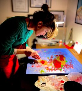 🎨Zorluk yaşadım diyemem. Avantajı oldu, simetrik tablolarımı oluşturabildim. “Karma” adını verdiğim serideki çalışmalarımı iki elli eşzamanlı teknikle farklı şekillerde üretebildim.