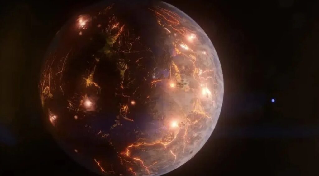 66 ışık yılı uzaktaki bir gezegen sisteminde bulunan ve NASA’nın TESS uydusu tarafından keşfedilen, yanardağlarla kaplı gezegen, bilim insanları için oldukça yeni. Sistemde bulunan diğer iki gezegenin sıra dışı eliptik bir yörüngeye zorladığı bu “cehennem” gezegen, bu çekim kuvvetleri sebebiyle yaşanan yüzeysel gerilimden kaynaklı olarak yüzeyinde birçok yanardağa sahip.