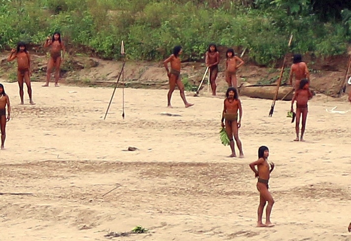 Peru’daki Amazon ormanlarında dış dünyadan tamamen soyutlanmış halde yaşayan Mashco Piro kabilesinin birçok üyesi, yaşadıkları ormanın dışındaki nehrin kenarında görüntülendi.