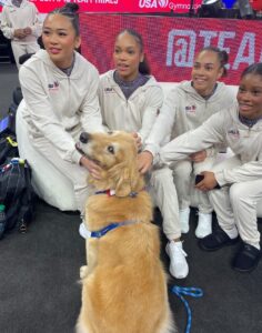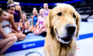 ABD olimpik jimnastik takımı ruh sağlığını ve moral-motivasyonu yükseltmek amacıyla dört yaşındaki Golden Retriever cinsi Beacon’ı (yol gösterici, terapist olarak ) eğitti.