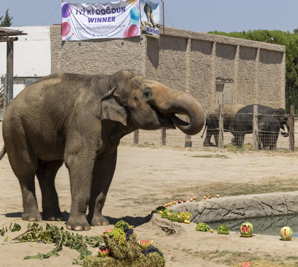 Dünya Fil Günü’nde İzmir Büyükşehir Belediyesi Doğal Yaşam Parkı’nda ailesi ile birlikte hayatını sürdüren fil Winner’ın 22. yaş günü kutlandı.