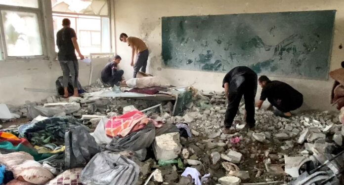 İsrail Ordusu, Gazze’de yerinden edilmiş Filistinlilerin barındığı Birleşmiş Milletler Okulu’nu vurdu.Bölgedeki hastaneler 14 kişinin öldüğünü bildirdiler.