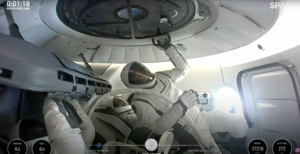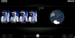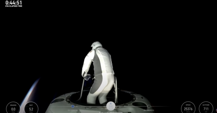 Jarrod Isaacman, Dragon adlı uzay kapsülündeki hava basıncı ayarlandıktan sonra aracın kapağını açtı ve içerdeki 4 kişinin arasından sıyrılıp dışarı çıkarak dizlerine kadar uzay boşluğunda kaldı. Uzay aracı bu sırada saatte yaklaşık 26,000 kilometre hıza sahipti.