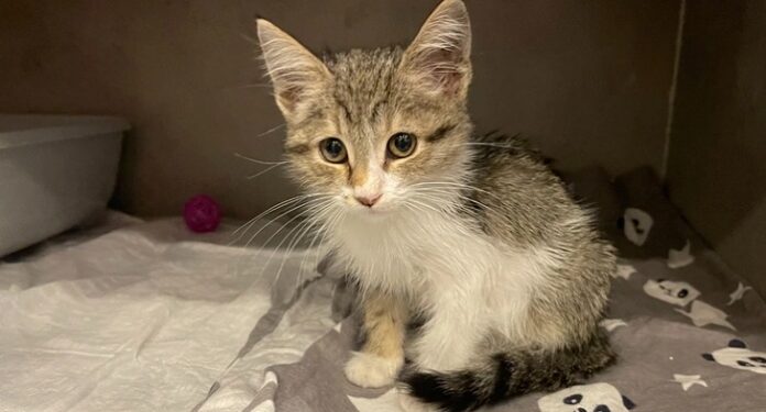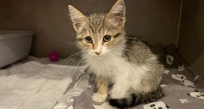 Yaklaşık 60 günlük olduğu tahmin edilen 600 gram ağırlığındaki yavru sokak kedisi, yemek yememesi ve kusması nedeniyle bir hayvansever tarafından geçtiğimiz günlerde veteriner kliniğine götürüldü. Bilinmeyen bir nedenle tavuk sesi de çıkartan yavru kedi, teslim edildiği klinikte tedavi altına alındı.