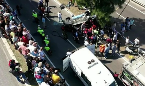 Sağlık ekiplerinin yaptığı kontrolde ters dönen otomobildeki 3 kadının hayatını kaybettiği, 2 kadının ise yaralandığı belirlendi.