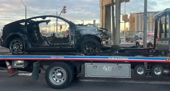 Kanada’nın Toronto şehrinde meydana gelen kazada, Tesla marka araç, yüksek hızla bariyerlere çarptı. O esnada Tesla, kapılarını otomatik olarak kilitledi.
