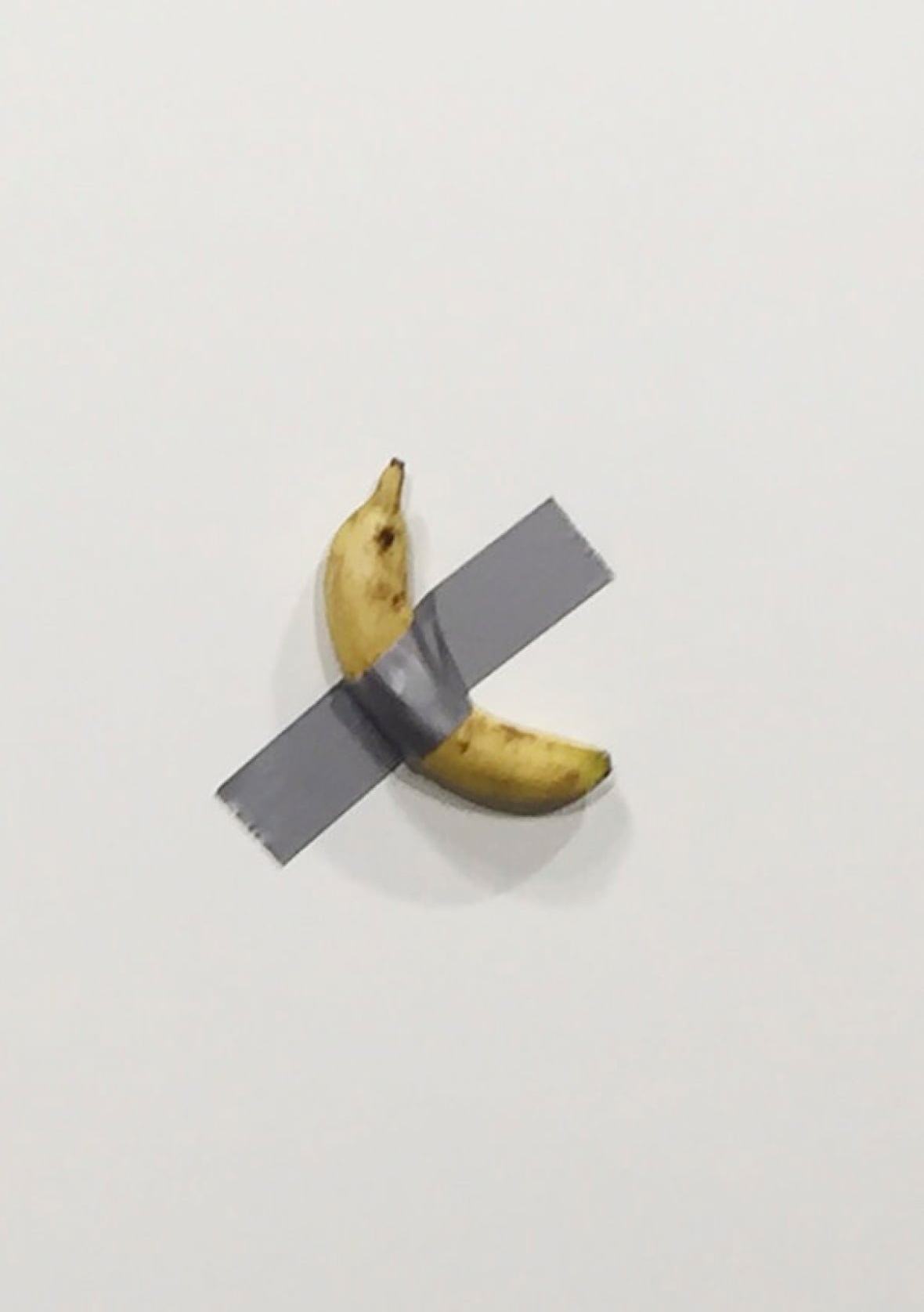 Cattelan’ın 2019 yılında Art Basel Miami Beach’te sergilenen bu eseri, o dönemde sanat dünyasında büyük tartışmalara yol açmıştı.