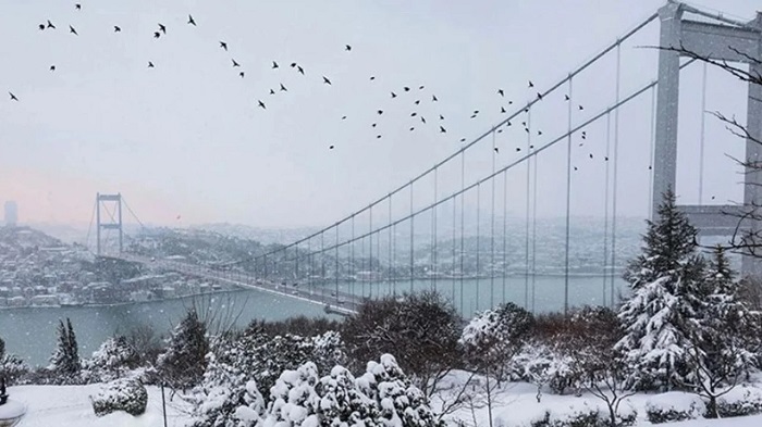 “Bölgemizde mevsim normalleri üzerinde seyreden hava sıcaklıklarının, cumartesi günü öğle saatlerinden itibaren İstanbul’da 8 ila 10 derece azalarak mevsim normallerinin altına ineceği tahmin ediliyor. Beklenen soğuk ve yağışlı hava nedeniyle cumartesi günü İstanbul’da yağışların aralıklı olarak genellikle yağmur ve sağanak şeklinde yer yer kuvvetli olması bekleniyor. Akşam saatlerinden sonra İstanbul’un yüksek kesimlerinde hafif karla karışık yağmur ve yer yer hafif kar yağışı ihtimali bulunmaktadır. Hafta sonunda, İstanbul’da beklenen günün en düşük hava sıcaklıklarının 3 dereceye, en yüksek hava sıcaklıklarının ise 7 dereceye kadar düşmesi beklenmektedir.”