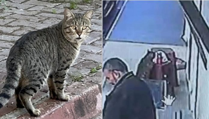 İş yerinin güvenlik kamerası görüntülerini izleyen Alkacılı, yemeğinin kedi tarafından götürüldüğünü tespit etti.